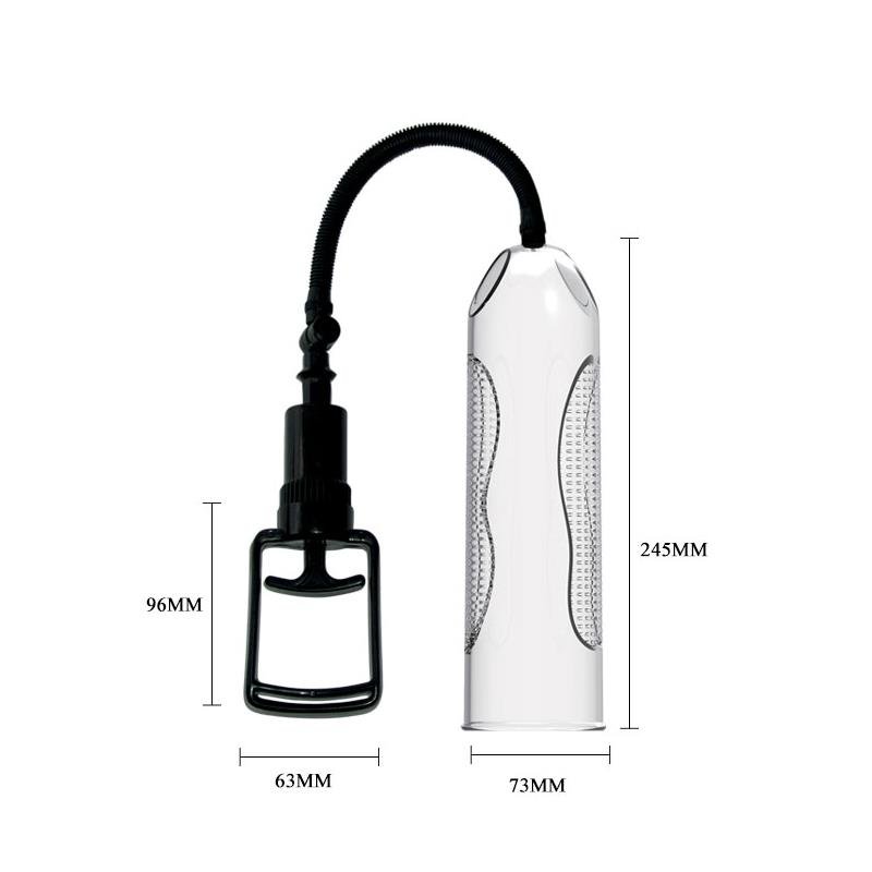 Esta bomba de pene te ayudará a mejorar el tamaño y la dureza de tus erecciones. Cuenta con un práctico mango de diseño tipo émbolo y una cámara transparente. Cada tirón del gatillo hará que tu pene crezca, volviéndolo más impresionante, más duro y más grueso. El tubo transparente te permite ver cómo tu pene crece en tiempo real y se vuelve más firme que nunca, lo que también puede ser muy excitante para tu pareja.