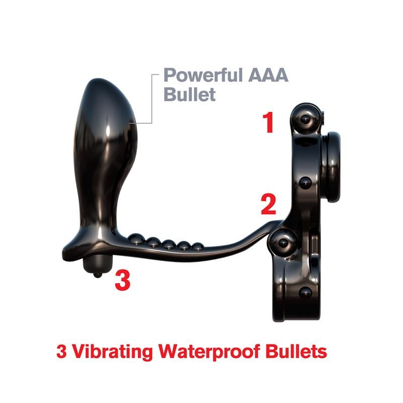 Goza de un tirón apretado estupendo en tus testículos mientras que el plug vibrador de la próstata hace que la tengas más dura que nunca. El estiramiento de la bola tira hacia abajo en tus testículos y les impide la retracción hacia arriba, retrasando la eyaculación y prolongando la diversión. Una bala está en el anillo superior para la estimulación directa del clítoris, otra detrás de tus testículos para un zumbido increíble, y la última dentro del plug anal.