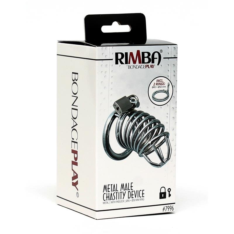 Jaula de castidad de metal con candado.