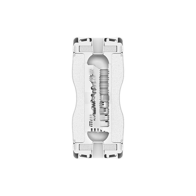 Compuesto de dos cavidades separadas que aportan diferentes sensaciones durante la penetración. Una de ellas es más suave y la otra más apretada para una penetración más estrecha, simulando así una penetración vaginal y otra anal. Los orificios de entrada están compuestos por una almohadilla suave y lisa que aplica el lubricante desde el comienzo de la inserción, ofreciendo al mismo tiempo adherencia adicional, una menor pérdida de lubricante y una mayor hermeticidad.