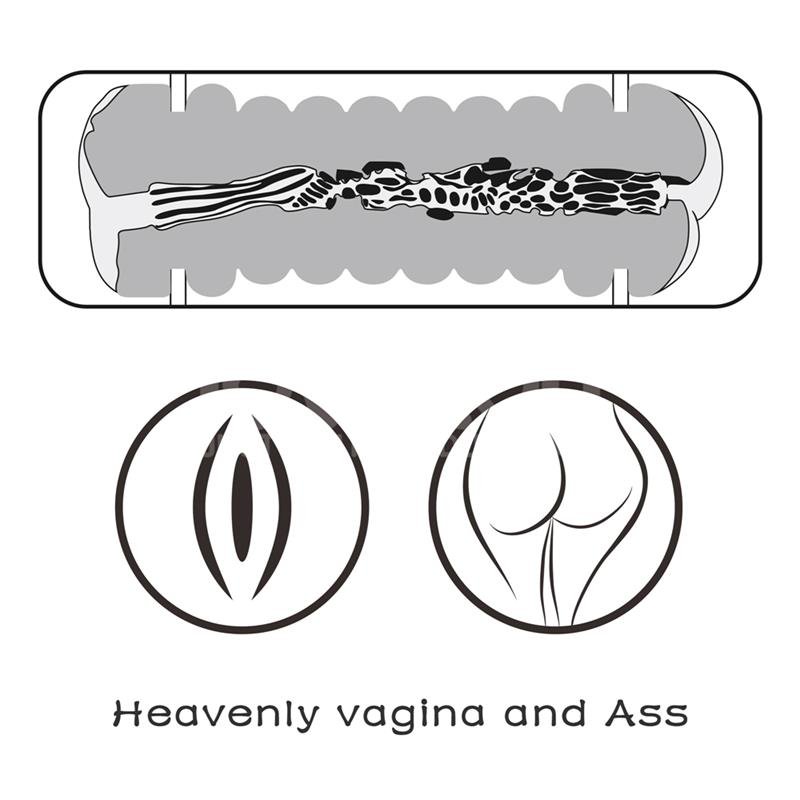 El diseño de doble apertura permite que un pene de tamaño promedio alcance cada parte de esta cámara. Cuanto más rápido te desplaces a través de este canal, más intensa será la estimulación.