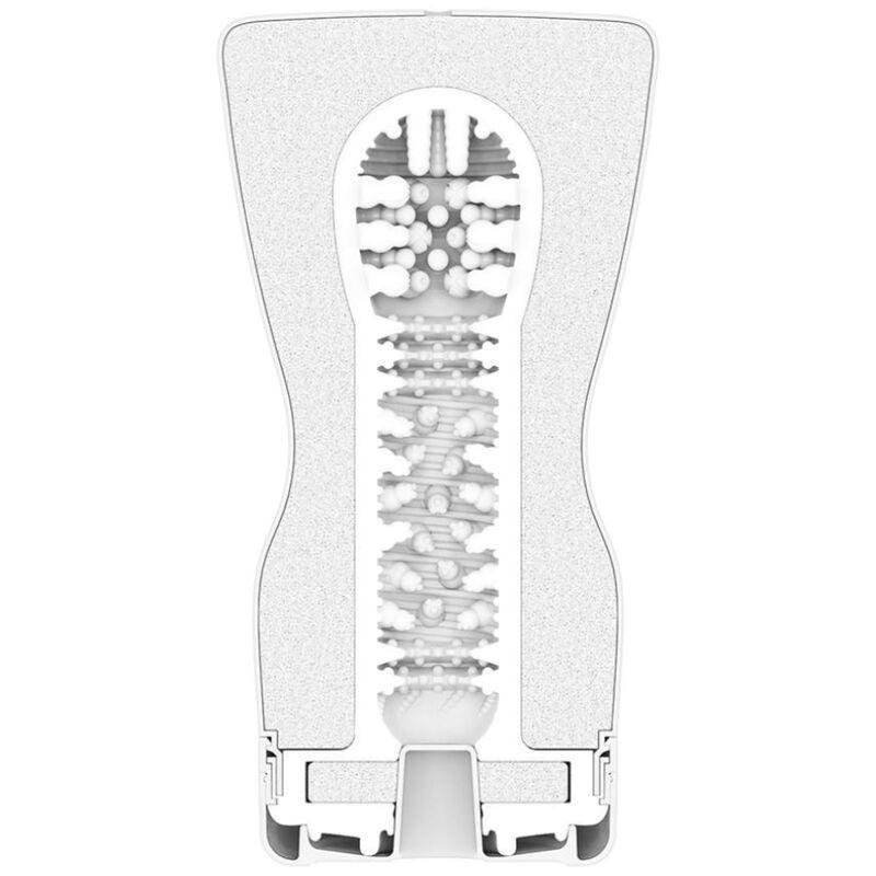 Posee una combinación de protuberancias de masaje y está fabricado con un material suave y delicado. Posee una válvula unidireccional que controla el flujo del aire. Posee un mecanismo de inserción llamado “Smooth Pad”, es una almohadilla suave y lisa que aplica el lubricante desde el comienzo de la inserción. Ofreciéndote al mismo tiempo adherencia adicional, una menor pérdida de lubricante y una mayor hermeticidad.