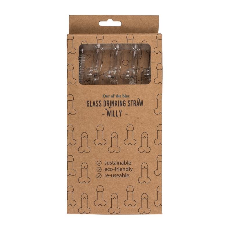 Pajita de cristal con forma de pene, cuenta con un limpiador para que puedas utilizarlas cuando quieras.