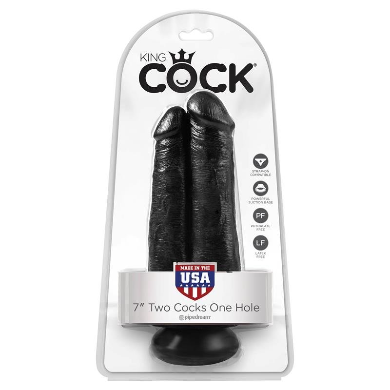 Este modelo de King Cock 2 en 1 te satisfará como nunca. Cuenta con un dildo esculpido con la forma de dos penes realistas. Fabricado a mano es flexible y es perfecto para la doble penetración. Para que lo puedas usar cuando y donde quieras cuenta con una fuerte ventosa, para que lo pongas en casi cualquier superficie. Es totalmente libre de ftalatos, no contiene látex, es segura para el cuerpo y totalmente hipo alergénico.
