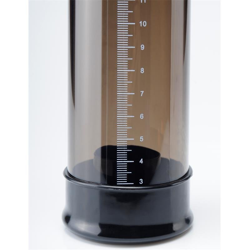 El ahumado cilindro de vacío te permite ver el aumento de tu pene. El tubo está hecho de acrílico grueso, de grado pesado y marcado con graduaciones métricas para ver su crecimiento. Cuando hayas alcanzado el tamaño deseado, simplemente presiona el botón de liberación rápida debajo del botón de encendido para aliviar instantáneamente la presión.