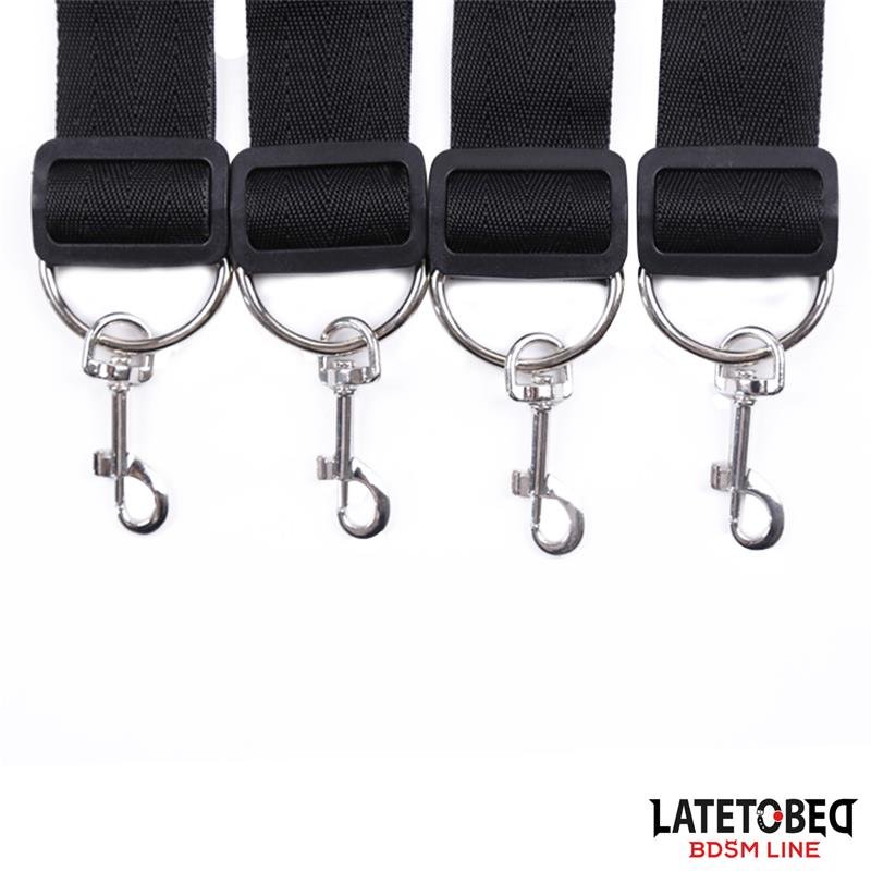 Este set de restricciones para la cama cuenta con correas y esposas para muñeca y tobillo ajustables. Gracias a esto es apta para la mayoría de tamaños de cama. Podrás desmontar las esposas fácilmente gracias a sus argollas.
