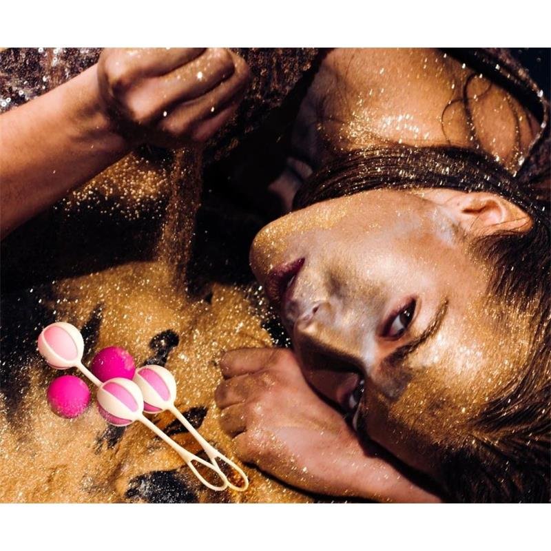 Set de 5 bolas Geisha con colores y pesos diferentes. Cuenta con dos fundas de silicona con tiras de silicona flexible para una cómoda extracción. Podrás combinar todas las bolas tu quieras y ejercitar tu suelo pélvico a tu ritmo.